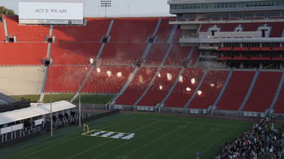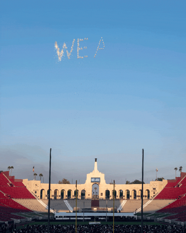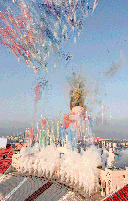 直到2024年9月,巴黎奥运的漫天烟花仿佛还未散去,在白昼最后光晕笼罩下的洛杉矶纪念体育场内的橄榄球赛场草坪上,蔡国强与其量身开发的AI模型cAI™共同创意的《WE ARE:为PST ART所作爆破计划》再次成为焦点,为我们带来了一场震撼人心的白日焰火表演。