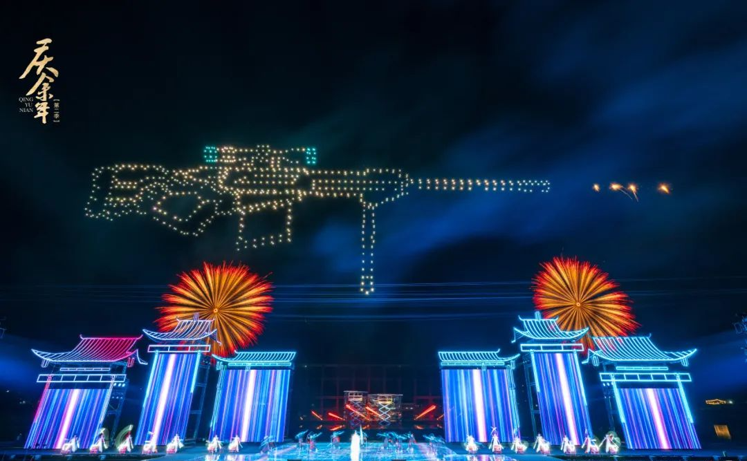 Breaking through from the previous stage design, adding visual fireworks transparent LED screens, combining virtual and real to break the dimension, and deeply integrating wire and customized fireworks props, sound and light in three-dimensional surrounding, penetrating the night sky, and putting the classic scenes and storylines in the hit drama "Joy of Life" on the night sky stage, through the perfect combination of drone formation and fireworks, it reproduces classic scenes such as Fan Xian's wedding, spring scientific expedition, chrysanthemum appreciation conference, and poetry travel.