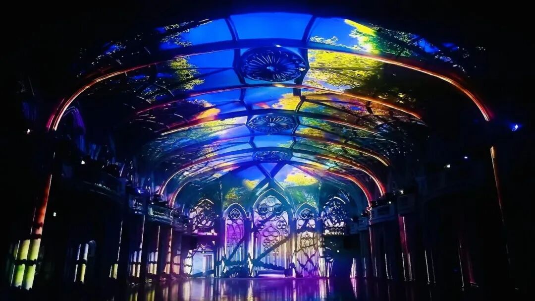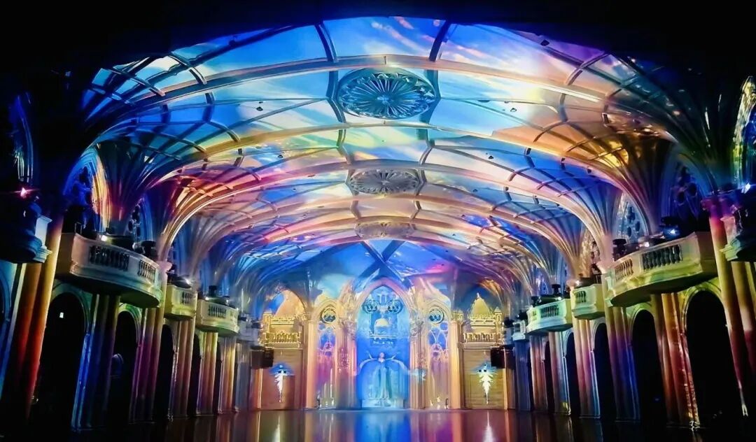 哈尔滨冰雪大世界梦幻冰雪馆于2024年7月正式开园,共建有9个主题分区和13个体验项目,馆内所用于景观建设的冰均为采自松花江的存冰,用冰量总计达2万立方米,为了保证对成品景观的保护,馆内恒温处于-8℃至-12℃之间。同时采用国际先进的冰雕雪建的理念、技术和工艺,运用声光电技术、3D Mapping 和实时交互技术,打造“世界最大的室内冰雪主题乐园”。