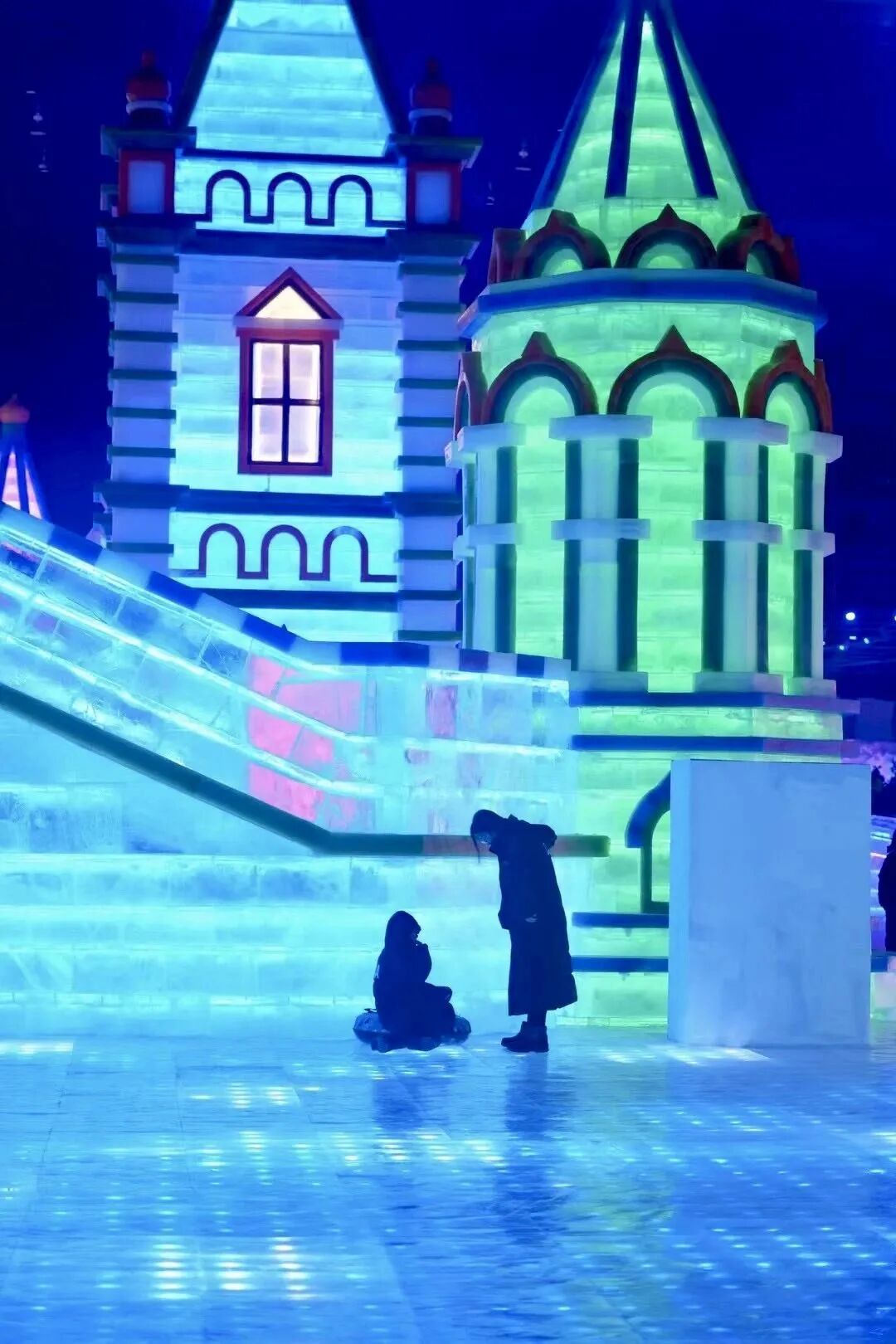 走进哈尔滨冰雪大世界梦幻冰雪馆便可以看到,冰雪森林、雪国冰堡等景观群,生动形象展现出哈尔滨原始的自然风光和民俗特色;冰城小镇、冰滑梯等区域处处洋溢着乐观幸福的欢乐场景,体现着人类与自然和谐相处的生存智慧;冰雪音乐厅、光影大厅等体验项目,更是让游客沉浸式体验冰雪营造的神奇场景和梦幻氛围,体验感拉满。馆内冰雕作品栩栩如生,五彩斑斓的灯光映射在晶莹剔透的冰面上,如梦似幻。每一处角落都雕琢精致。
