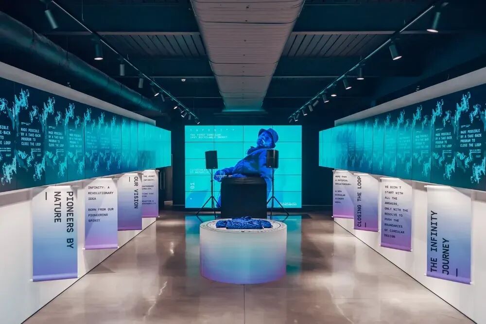 The experience room is equipped with various colored light strips, direct and reflected light. Visitors can stand in front of the mirror and experience the theme of "infinity" while taking selfies. Various thought-provoking movies and animations are playing in the knowledge exhibition booth, allowing visitors to gain a deeper understanding of the design philosophy and innovative thinking of jackets, as well as Napapijri and Econyl ® The cooperative relationship between brands.