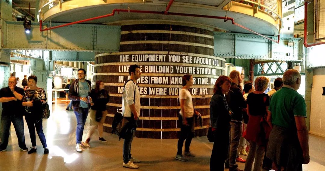 博物馆观光动线共七层,首先介绍啤酒酿制过程、水源与工艺,用黑白影片分享制桶师的故事。 馆区摒弃呆板文字,运用3D效果呈现角色,讲述创办人阿瑟·健力士的生平与贡献。 进入大门,轰鸣的机器、巨大的发酵池、高耸的储存罐,一整套啤酒生产流程赫然眼前。