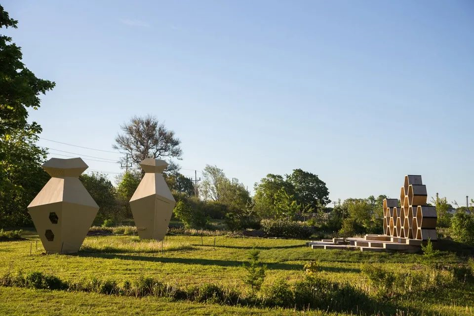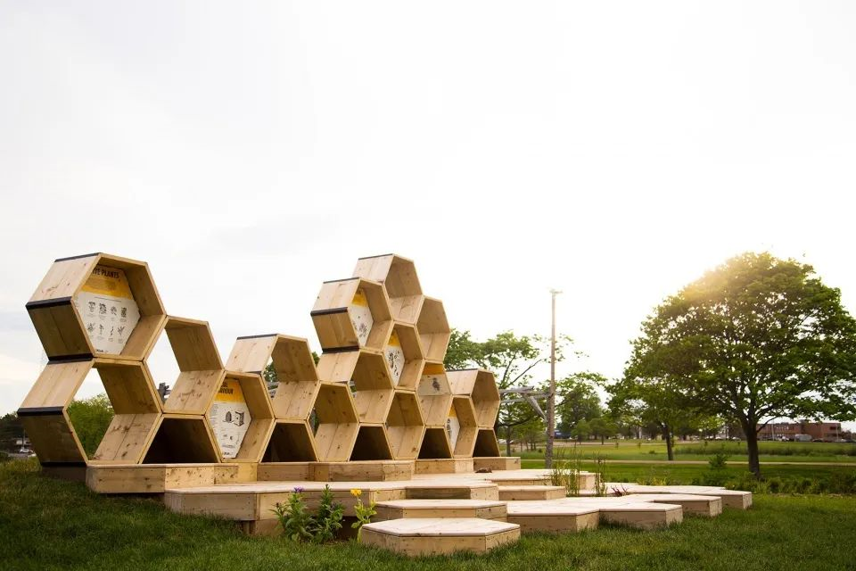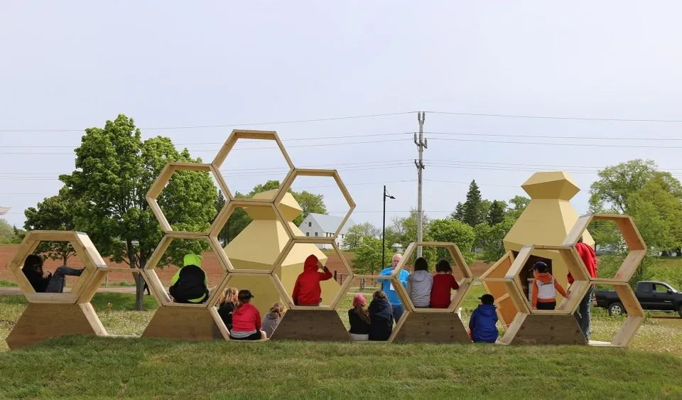 建筑不仅仅可以是居所,是景观,也可以是具有教育意义的装置。加拿大的城市蜂巢项目是一个位于城市公园PEI Farm Centre的社区性项目,建筑师设置这个装置旨在强调传粉昆虫的重要性和它们在可持续环境中的重要作用。