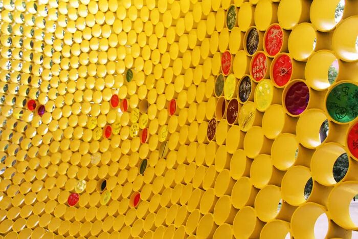 整个作品适合拍照留影,它能记录人们的快乐,是一段美好回忆的物质载体。同时也符合现今读图时代的传播方式。它通过图像信息不断的外向传播,传播出去的不单单是作品本身,还有作品承载的美好愿望和参与者的欢快记录。