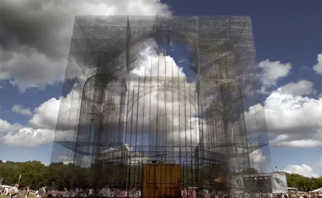 意大利艺术家edoardo tresoldi 创作了一个巨大的线状网格作品,矗立于威斯康星州乌克莱的中心地带,在2016 eaux claires festival上对外进行展示。