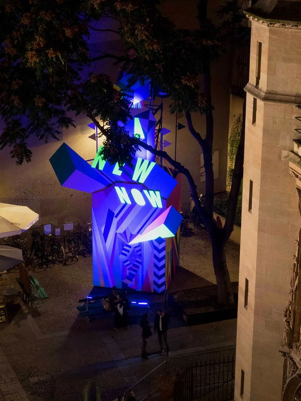 这座8米高的醒目雕塑旨在树立一种新的观念,为后疫情时代创造一个“新的现在”。一系列看似混杂的几何形状从地面“生长”出来,接着攀升至耀眼的、色彩鲜艳的“A NEW NOW”(新现在)字样,意在通过简单而醒目的自信与乐观主义来激发路人的想象力。