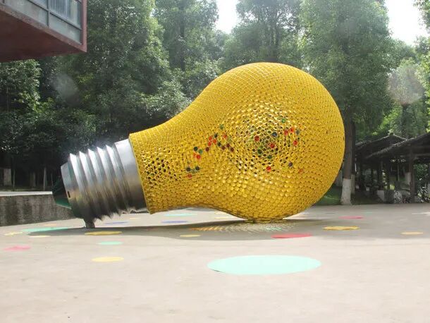 选择“灯泡”作为设计形象是因为灯泡是人类伟大的发明之一,它相较于美术馆中的艺术品更亲近于所有人,可以拉近艺术与人的关系。为了让装置有更丰富的层次,设计师通过体量,颜色,夜晚梦幻斑斓的灯光和与人更亲近的接触上做了精心的设计。因此,它不单是一个“好看”的灯泡,还是一个可以进入其内部的炫酷空间,能给人带来极强的视觉与身体体验的刺激。