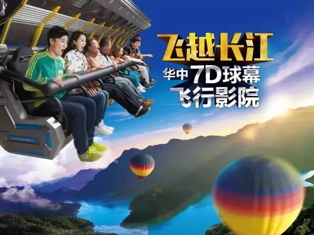 武汉欢乐谷的“飞越长江”球幕项目是华中首个7D球幕飞行影院,观众可以乘坐飞行座椅,从长江的发源地开始,与中国登山队一起勇登珠穆朗玛峰,到青藏高原与羚羊赛跑,飞过万重山途经武汉,一直到长江的出海口上海,尽览两岸的地标性建筑、自然景观,沉浸式体验从长江的发源地到出海口的全过程。