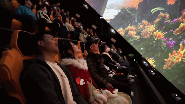 “飞越清明上河图”球幕影院项目以北宋张择端的《清明上河图》为主题,利用数字科技,让这幅传世佳作在12米超大直径的IMAX巨型球形荧幕上焕发出新的生机。整个球幕画面为360°全景呈现,利用科技呈现裸眼3D版《清明上河图》,打造沉浸式观影体验。座椅通过模拟上升、俯冲、滑翔等动作,带领游客穿越千年历史画卷,一览宋代盛景,让游客犹如身临其境般畅游在3D版《清明上河图》画卷之中。
