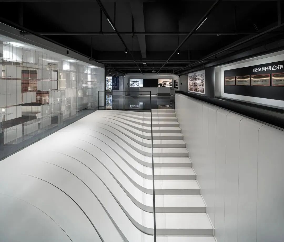 走出荣誉展厅,经过一座企业大事记的时空回廊,连接代表企业进行时的生产工厂,企业的过去与未来同时呈现在眼前,是一座激活客户感知与交流的体验之地。