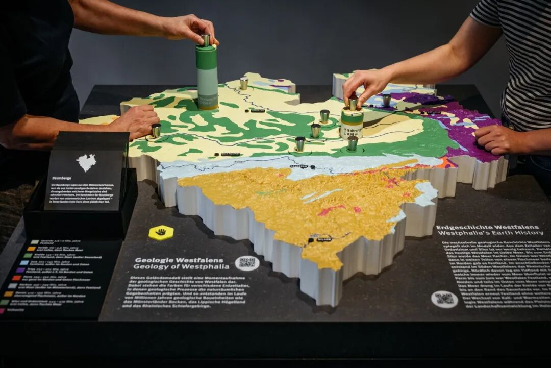 多样化的教育理念、触觉实践、数字媒体和诱人的实验站引导参观者参观展览。高对比度图形和触觉定向图使定向变得更加容易。带有游戏化元素的多语言媒体指南使展览参观更加圆满,确保了不同语言背景的游客都能享受到这次地质学之旅。