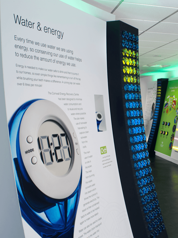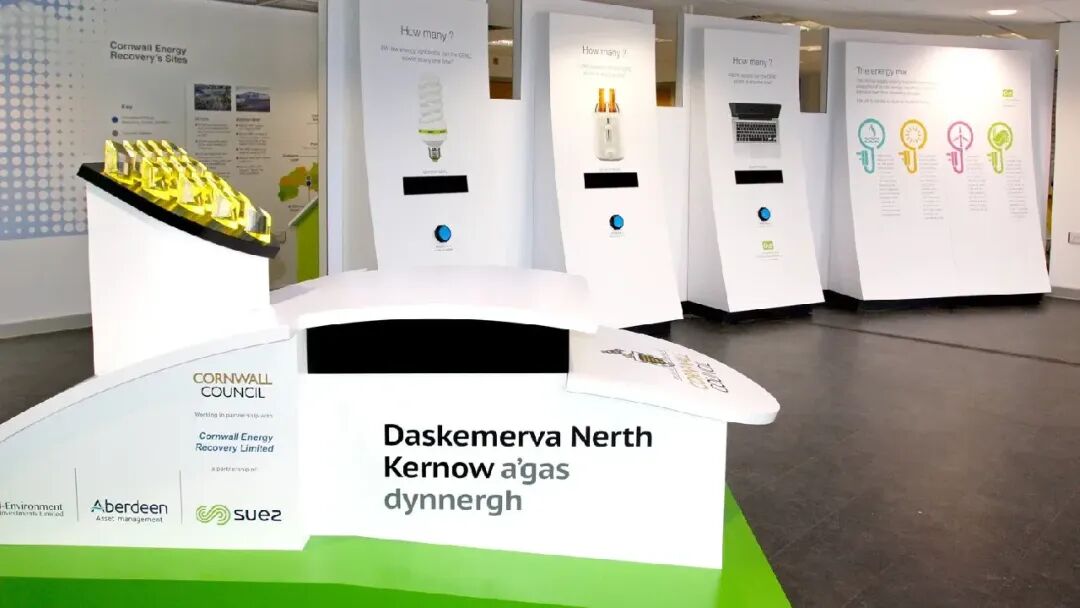CERC的展览设计重点在于为康沃尔理事会和康沃尔能源回收有限公司打造强烈的品牌形象,彰显两者之间的紧密合作关系。展览通过一系列互动和教育性的展示,讲述了能源回收的故事,并展示了其在整个废物处理流程中的位置,以及回收等其他环保举措。