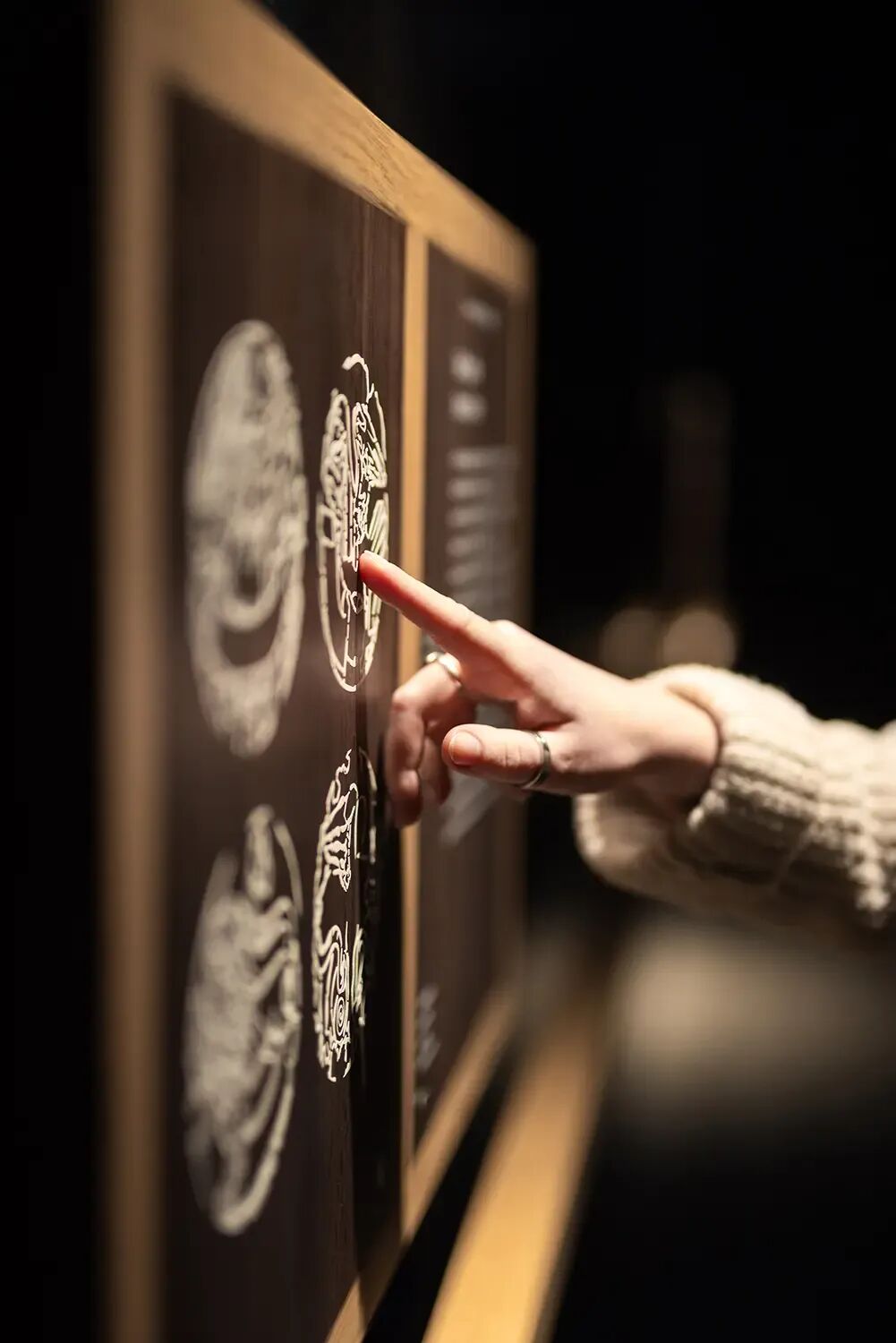 开发互动屏幕(如手稿高清放大查看、虚拟抄经体验)、声音设计(背景诵经声随展品切换);