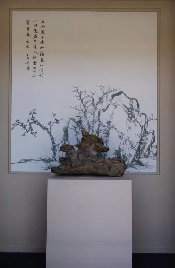走向四僧书画特展的路上,观众的视线就被一块赏石所吸引,其实那是一块元代的造云石,上面还有顾瑛、董其昌等文人题字。