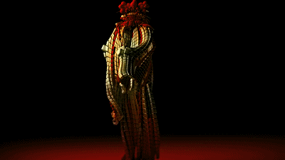 动画展示了多个戏曲人物,每一个戏曲人物都运用了不同的设计手法,比如拉伸型织线、延展型材料及弹性金属线等,展现出令人惊叹的视觉效果。