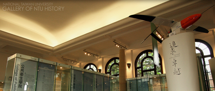 台湾大学校史常设展厅约754平方公尺,前身是旧总图书馆中央阅览室。起造于1929年的旧总图书馆,历经五次扩建,终至今日規模。挑高的天花以及连续的拱窗,型塑出特殊的建筑美学与年岁,过去伫立七十年呵护学子寒窗苦读,成为出类拔萃的人中龙凤;现今,依然挺拔地伴随大家细数台大百年的风华沧桑。