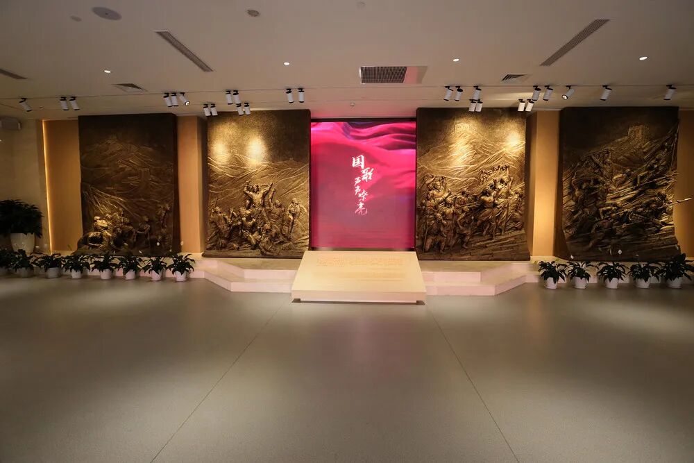 尾厅以“前进”为主题,寓意中华民族在新时代征程中高唱国歌、奋勇前进。