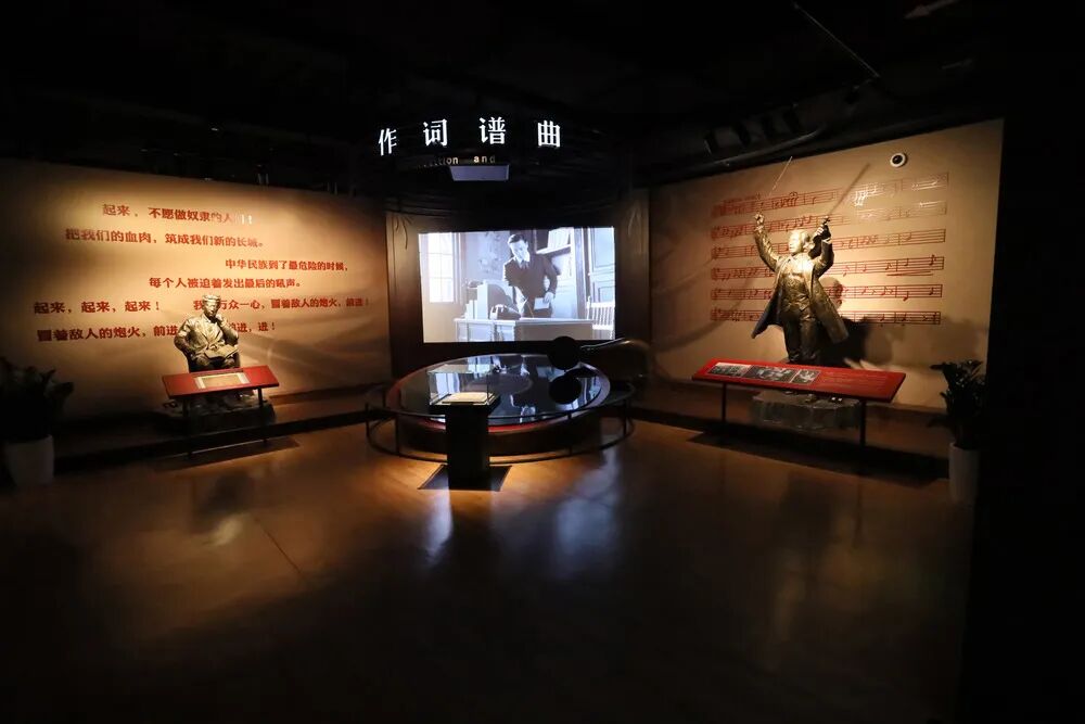 国歌展示馆全面展示《义勇军进行曲》的诞生、传播、立法及其深远影响,通过实物陈列、场景再现、多媒体互动展示,生动演绎《义勇军进行曲》从电影《风云儿女》主题曲到成为中华人民共和国国歌的光辉历程。