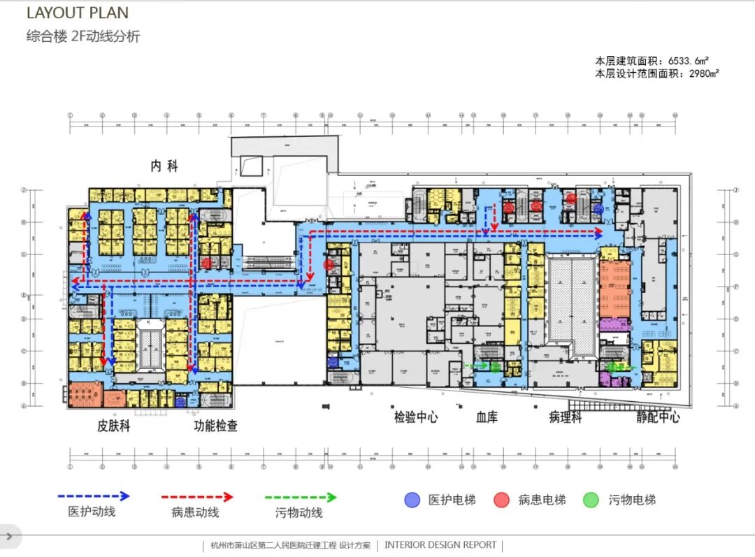 l 感染控制:医院建设首要保证的是安全,避免交叉感染。在对其进行设计时,明确洁净分区,防止二次污染,注重院感控制和环境安全,以及不同人员动线的分流。