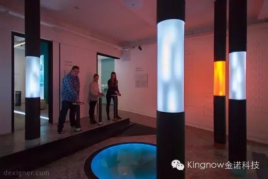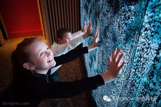 伴随游客施加的压力,墙面会由内而外发出相应面积的光亮——压力越大,光亮面积越大。