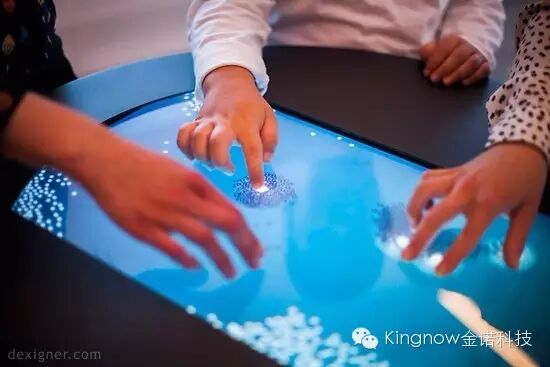 游客通过在桌面上滑动手指积累负电粒子致使系统能量失衡,