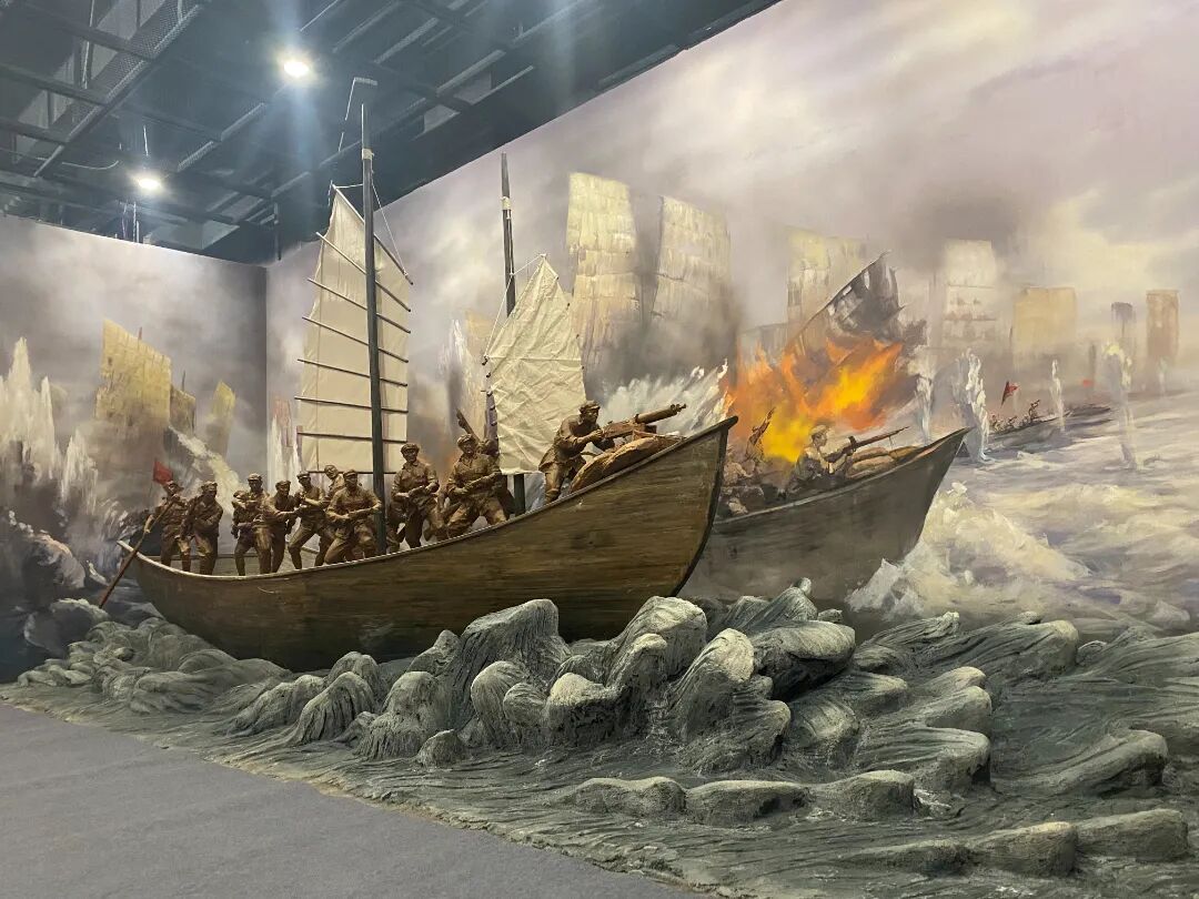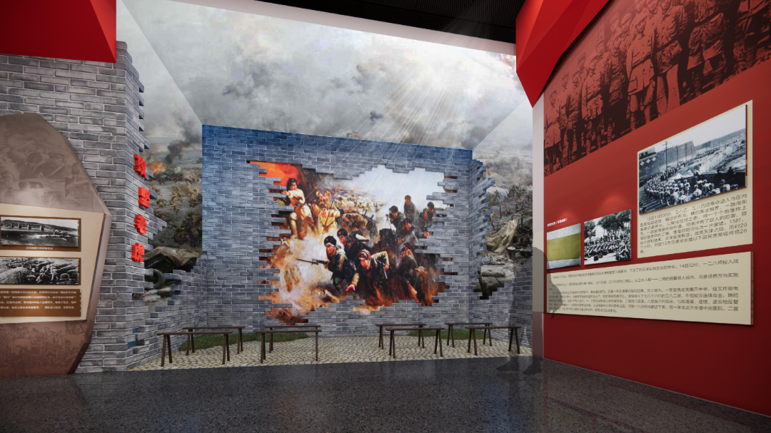 第四部分——铁流滚滚,采用大型壁挂沙盘、造型投影与沉浸式空间让我们身临其境,一起走过当年那段光辉的战斗岁月,一同体验那种强烈的心灵震撼。