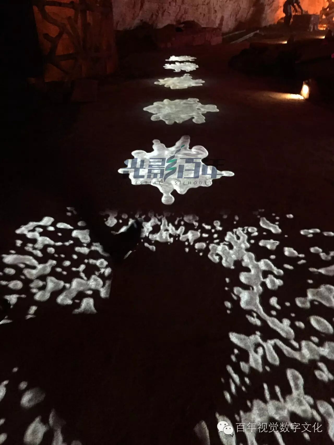 地面互动投影与以往的地面互动不同的是,以其水印形式展示,游客走过,水银散开,展示了万山矿山公园不同于其他的一面.