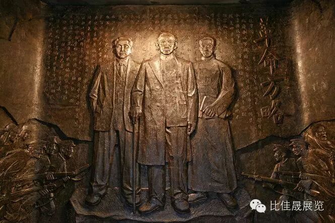 孙中山、章太炎、黄兴被誉为“辛亥三杰”,章太炎纪念馆革命厅入口处创作了一组长6.6米,高3.8米的“辛亥三杰”浮雕,用以纪念“辛亥三杰”及为新中国奋勇抗争的革命人士。