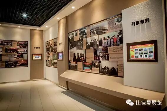 本案设计完全依托原建筑结构表面进行装饰面改造和展品展项布置,在不破坏任何建筑结构与室内原装饰面的前提下进行,风格清晰、定位明确。整体围绕由大到小、内外结合、一核多点、层层递进的展示逻辑展开,共分为四大单元版块:1 法院大院、2 院史陈列厅、3 干警工作区域、4 当事人区域。