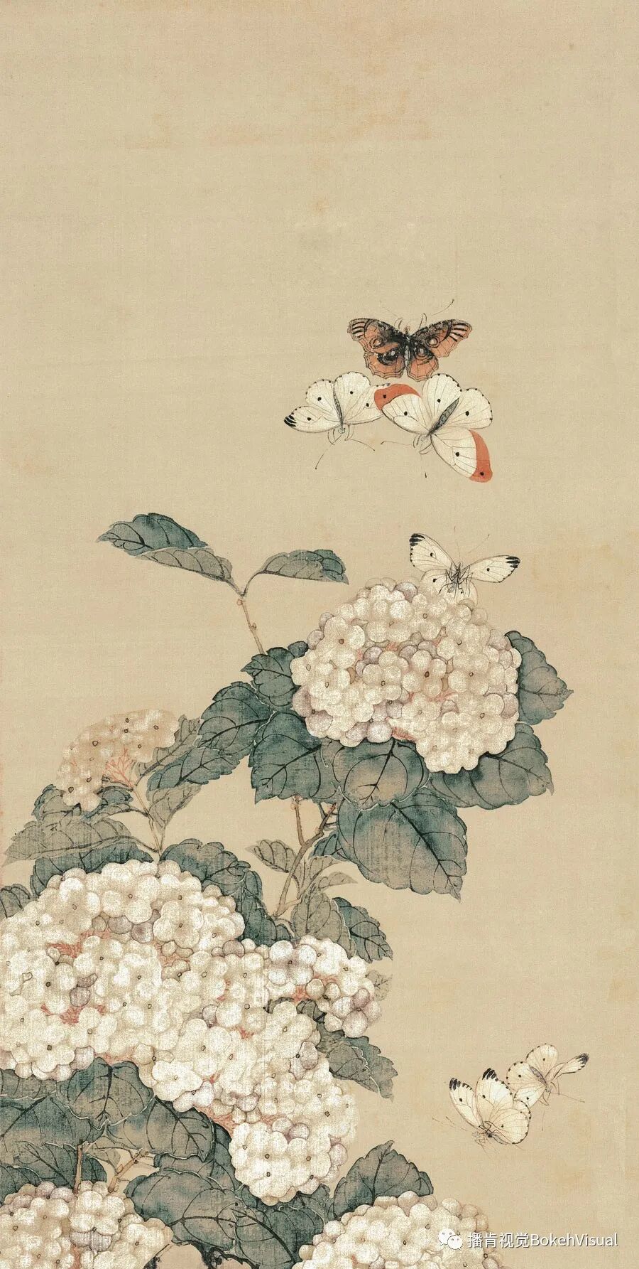 从清代晚期居派花鸟画大师居巢的作品中,提炼蝴蝶和花朵等元素,演绎东方梦境的气韵。