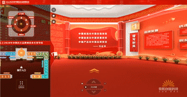 点击进入可看到首页导航栏,观众可以自主选择各省市的展馆进入,快速跳转至相应展区,进行360度VR全景漫游,逼真体验线下逛展的真实性。