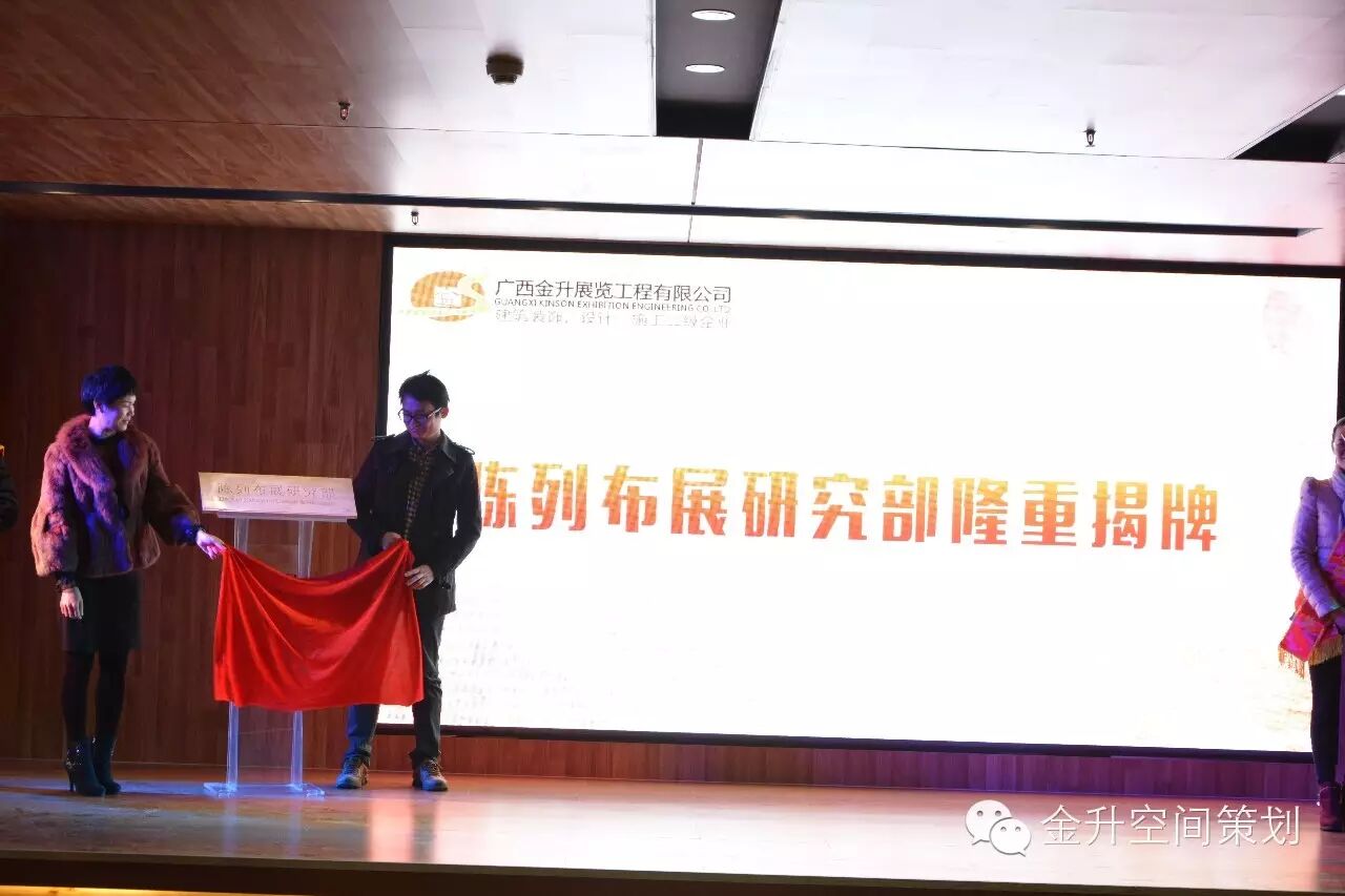 2015年12月18日,名为以“振兴八桂博展,深掘民族文化”为宗旨而组建的“陈列布展研究中心”在我司举行隆重的揭牌仪式。参加揭牌的嘉宾有来自省、市一线的馆藏陈列资深专家,社会友人等近百人。 “陈列布展研究中心”由自治区博物馆、规划馆、等文博馆所的资深专家组成,雄厚的专家组实力与我司的先进设计理念相结合,共同提升广西博物馆、规划馆、纪念馆等文化板块的陈列布展水平,共同为广西地域文化展陈做贡献,给文化事业添光彩。