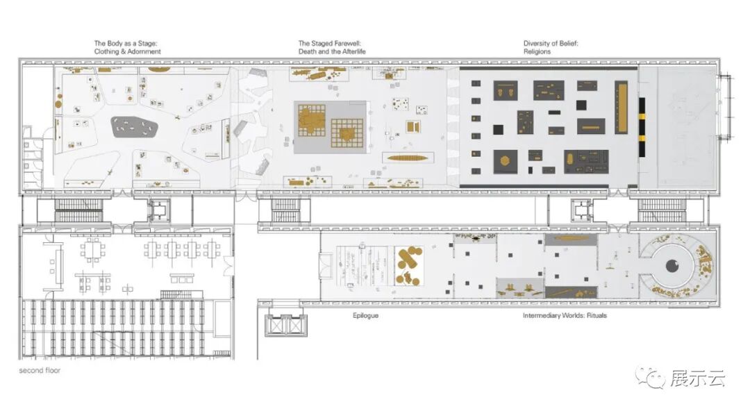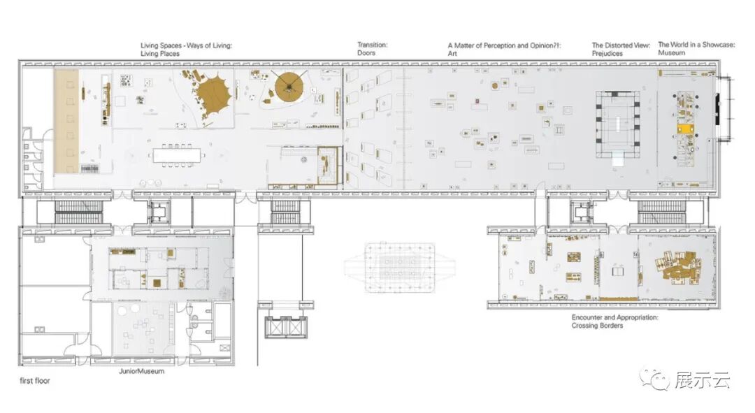 这是一个人类多样性的档案集合!基于一个公开的档案库的设计概念:超过1000个展品被安排在与之相对应的的五个地域:非洲、美洲、亚洲、欧洲和大洋洲。此外,民族音乐学也通过仪器和声学装置展示。参观者通过一个明亮的序厅空间进入这个百科全书般的档案库,该空间介绍了藏品的多样性,也说明了它们的起源。一个大展台上展示的多元化合集,丰富地绘出一幅令人印象深刻的画面。