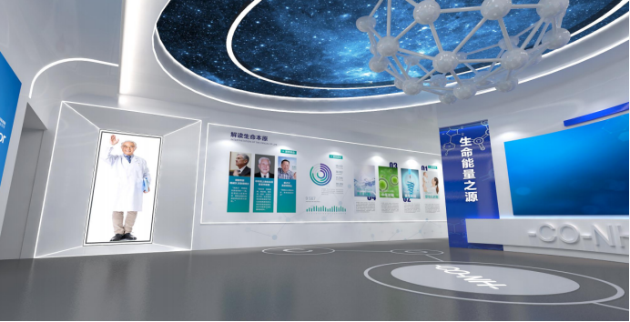 公司研究的主题——肽,是构成人体细胞的重要因素。医学专家的全息玻璃的设置,让医学专家零距离的为观者讲述肽的功能与重要作用。权威人士的影像,拉进了观者的距离,为信任感的建立打下基础。