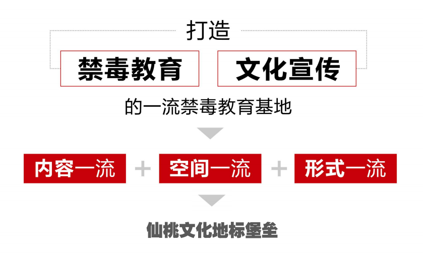 最终,励维展示结合仙桃市的实际情况,将基地定位于打造集禁毒教育和文化宣传于一体的国内禁毒教育基地,具体表现在内容一流、空间一流、形式一流,形成仙桃市地标性文化堡垒。
