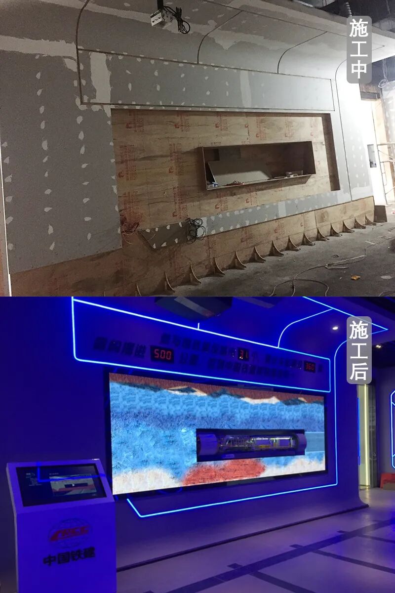 此处最大的亮点就是镶嵌盾构机模型的大型异形屏,机械设备和电子设备的完美结合获得了客户的认可、观者的欣赏,但背后却有着一个不眠不休的故事...