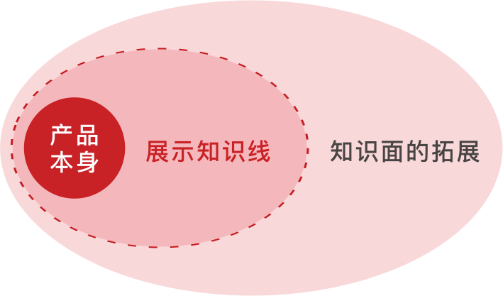 围绕着产品本身这个点,建立一条完整的展示知识线,从而让观者获得知识面的拓展。