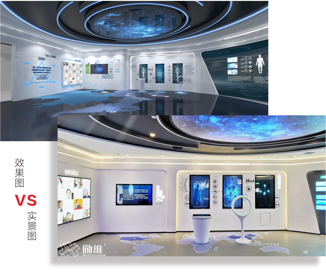 为此,励维展示展厅策划出了以“生命科学”的科普为媒介,解密健康产业“产学研用”四个维度的生态圈,通过整个展厅观展中学习参与、互动体验的各个展项设计,以达到汇集民众力、企业力、产业力的集体智慧,为健康中国的建设贡献力量。