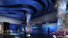 空间线:展厅入口是一个玻璃丝印感应门,外观造型融入宇宙时空、细胞结构、基因图谱等标志性元素,营造出生命空间的神秘氛围。进去后是一个三折巨幕空间,当观者进入序厅,感应系统自动捕捉激活播放。