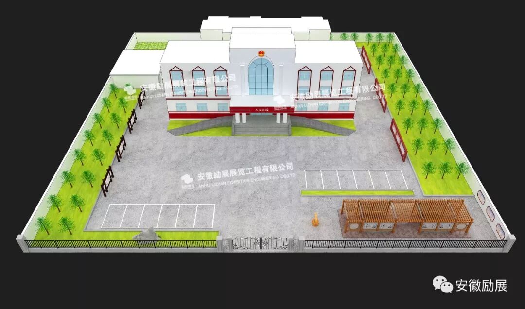 在创意设计上结合各个镇独有的特色传统文化贯穿整体法庭形象,景观区增加文化园,给予法庭人员学习及文化传播内容,运用简单的造型,大面积使用乳胶漆,整体简单实用大方,符合法庭自身形象。