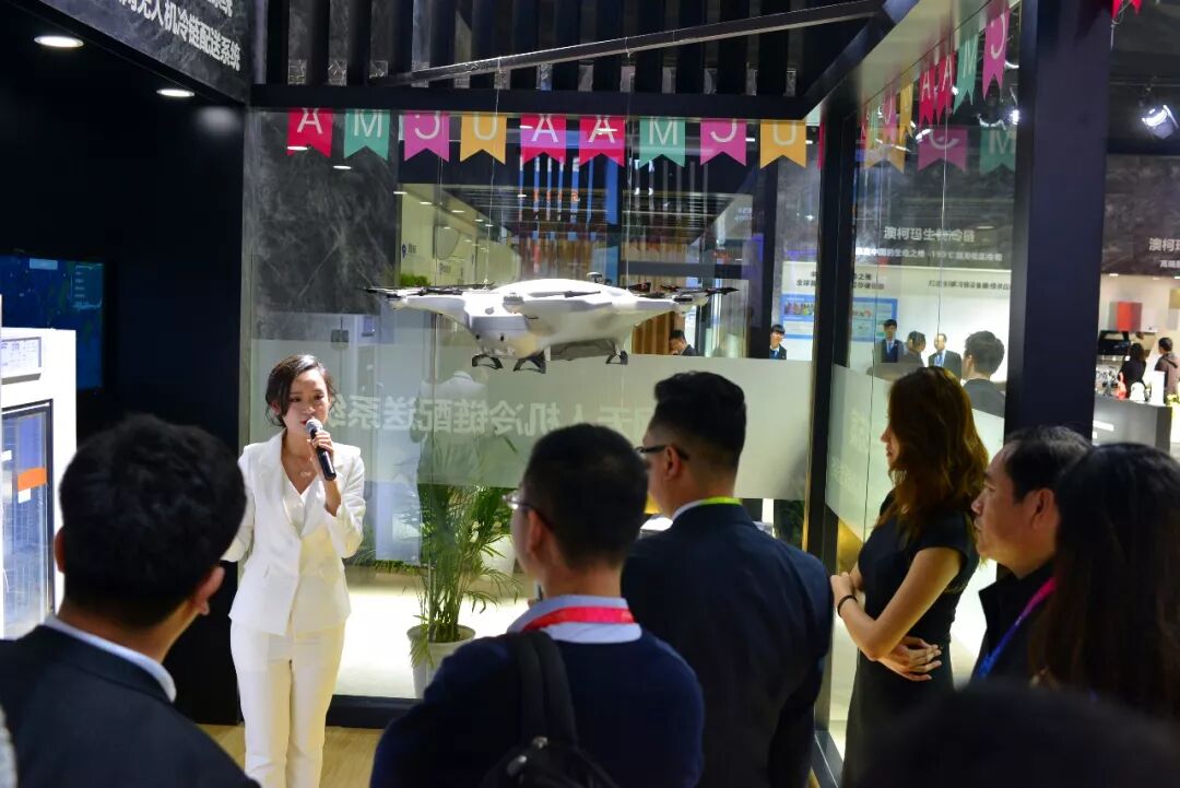 澳柯玛展出了图像识别、重力识别、射频识别等多款AI智能展示柜,以及刷脸支付售货机、医联网血液冷链配送、药联网无人机冷链配送,提供了一套全球领先的冷链终端系统解决方案。