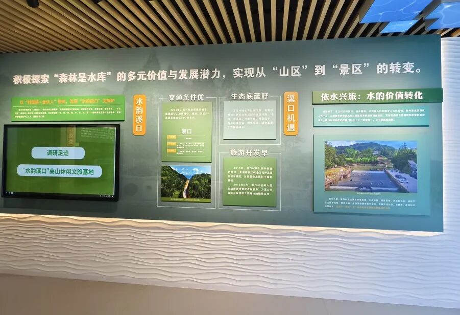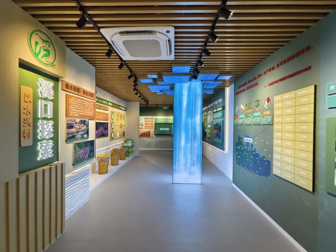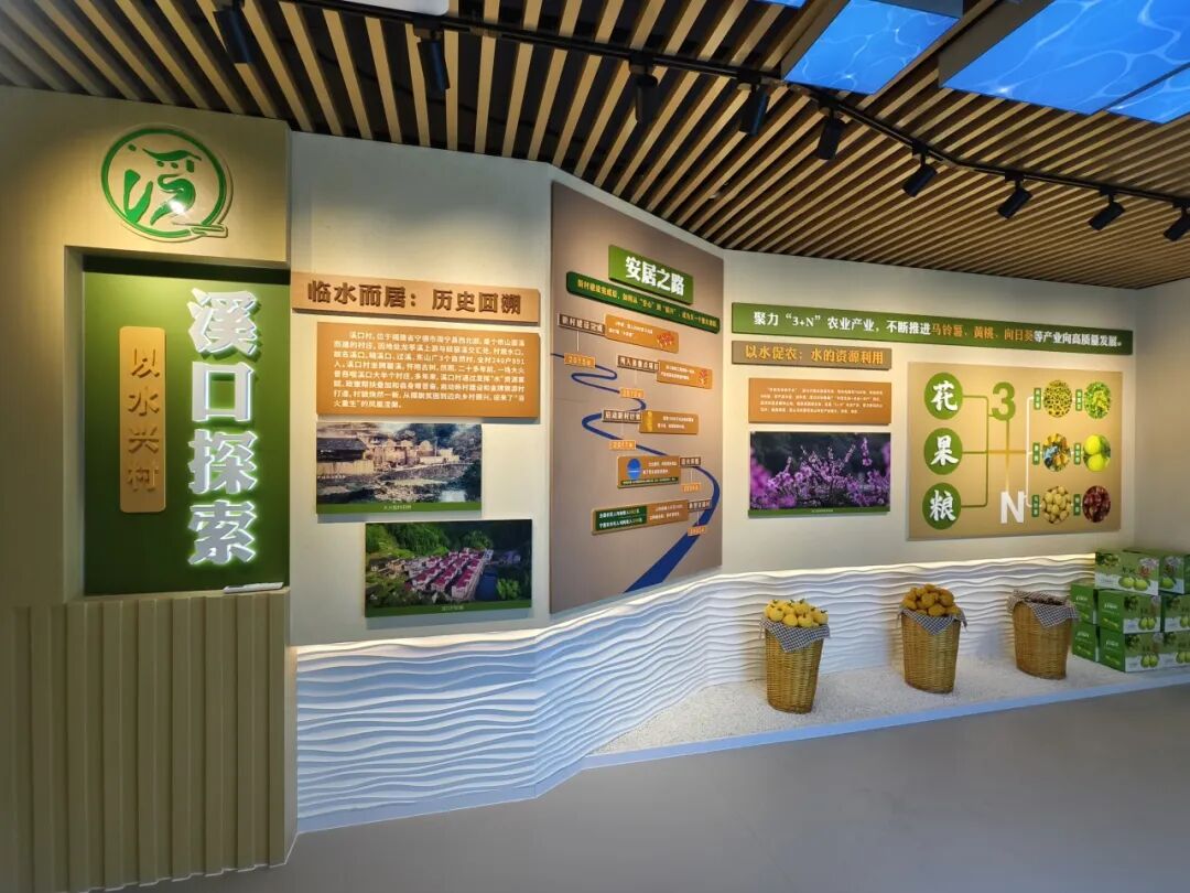 第三展厅分为“临水而居:历史回溯”“以水促农:水的资源利用”“依水兴旅:水的价值转化”三个部分,展示溪口村浴火重生,点水成金的振兴之路。