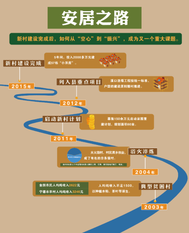 灾后重建,对于一个偏远山村来说谈何容易。那时候,溪口村村民人均年收入不足1500元,是周宁县典型的贫困村。火灾发生后,大多数村民没有能力建新房,全村80%的人到上海、江苏、浙江等地打工、创业,溪口村也成了远近闻名的劳务强村。