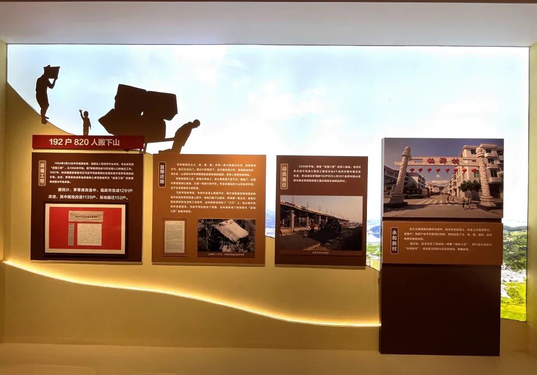 运用艺术场景展示畲族群众搬迁下山奔赴美好生活的画面。呼应内容,让观众更好地带入观展情绪。