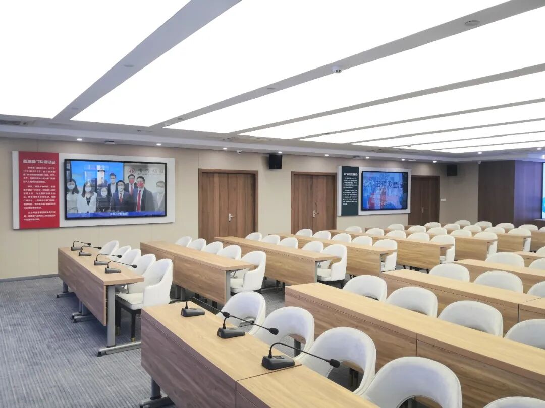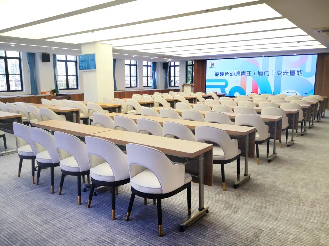 这里可容纳100多人,可进行会议、培训、讲座、沙龙,可实现厦门与港澳青年之间的远程线上交流研讨、远程会议等。