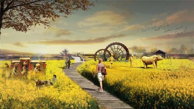 运用古耕龙岗历史再现手段打造集观景、体验、科普为一体的入口景观公园。