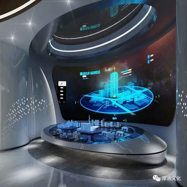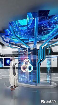 多媒体和数字化技术作为展示技术,使用最新的影视动画技术,结合独到的图形数字和多媒体技术,以各类新颖的技术吸引参观者,实现人机交互方式的展厅形式。