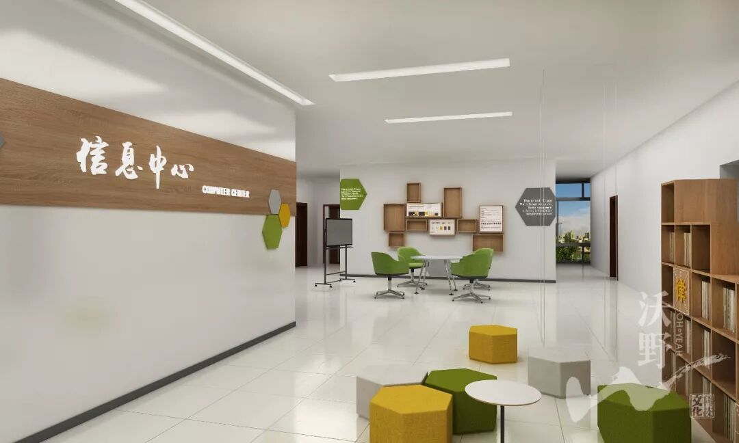 改造设计将空间重新划分,打造多个集学习、休闲、交流、沟通于一体的公共空间,并以书柜及屏风作为隔断,通过虚实的屏风连接把各个空间连接到一起,各种功能各得其所,互不干扰,构建特色书香校园文化氛围。