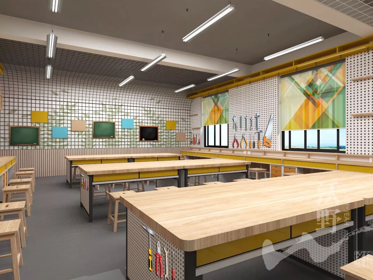 学校环境是基于学习过程中得到的创新理念。其主要思想是:在高品质的环境中学习。特别是光线、空间、色彩和声音方面,能更促进学生们快速掌握并从中获得乐趣。
