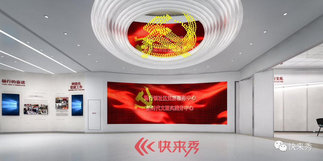 快来秀负责杨行镇社区党群服务中心的展陈部分,设计团队在打造伊始就充分贯彻“提升党建引领基层社会治理能力”的目标,通过整合社会事务、社区事务、文化设施、体育配套、文明实践、社会组织、志愿服务等功能,更好地发挥基层党组织政治引领、加强治理、凝聚力量、为民服务的功能。